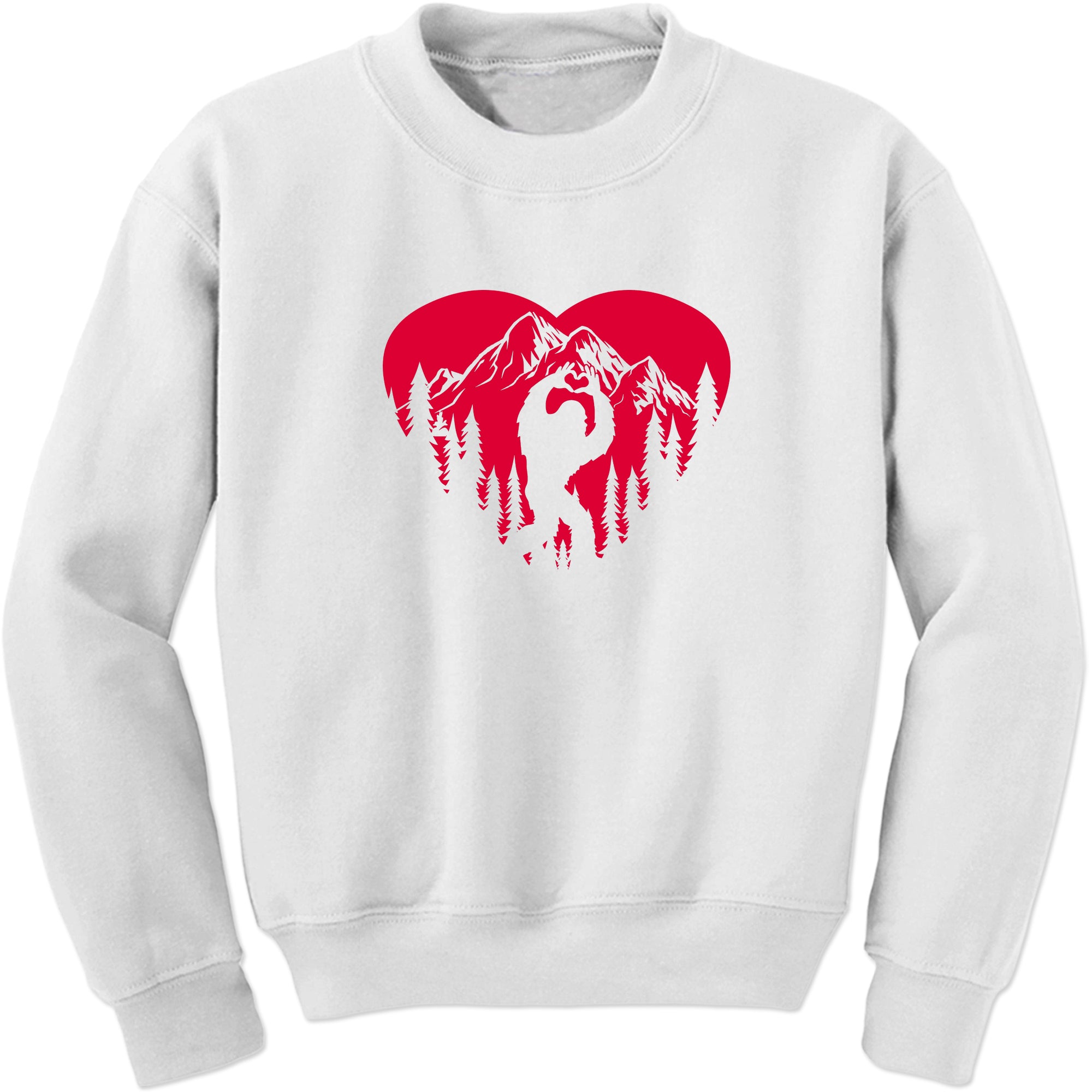Unisex Valentines Day Bigfoot Heart Sasquach Love Crewneck Men's Women's Sweatshirt Sweater